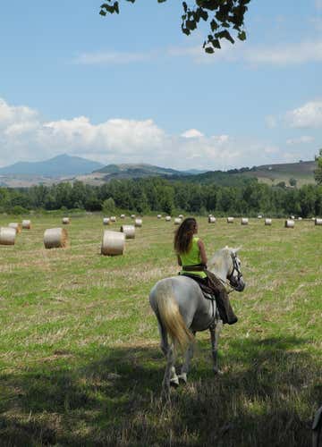 We will then climb into the saddle with American riding, one at a time with the support of the guide. When everyone is ready, we will venture out for a ride: we will ride through fields, vineyards, olive groves and woods characteristic of the Maremma. We will also reach vantage points with views of Mount Amiata, Radicofani or Tuscia , depending on the route taken.