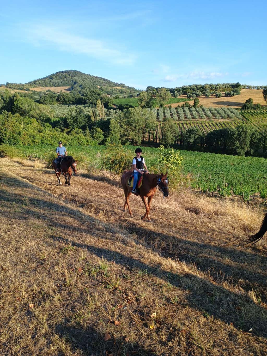 In Montepulciano, in the province of Siena, you can take a horseback ride through the nature of the Tuscan countryside and admire magnificent hilly landscapes dotted with vineyards and olive groves.