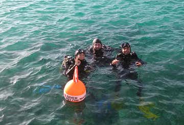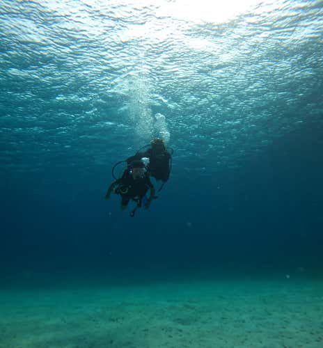 Once at the dive site, we will try out the regulator while snorkelling, to get familiar with the equipment. Then, each accompanied by his or her instructor, we will fully dive to a maximum depth of 6 metres.