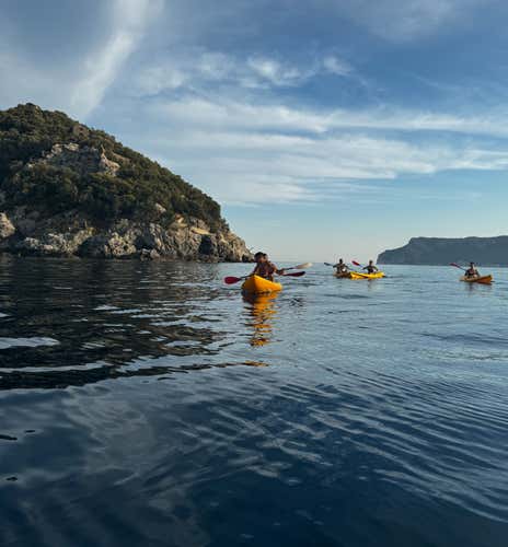 Once at sea, we will point our bows towards the island. We will paddle for about 1 hour enjoying the view of the coastline, until we reach the most interesting spots in the Marine Protected Area. Here we will leave the kayaks to dive: we will spend about 1. 5 hours doing guided snorkelling, following the movements of the guide who will point out fish, sea plants and the wonders hidden beneath the surface.