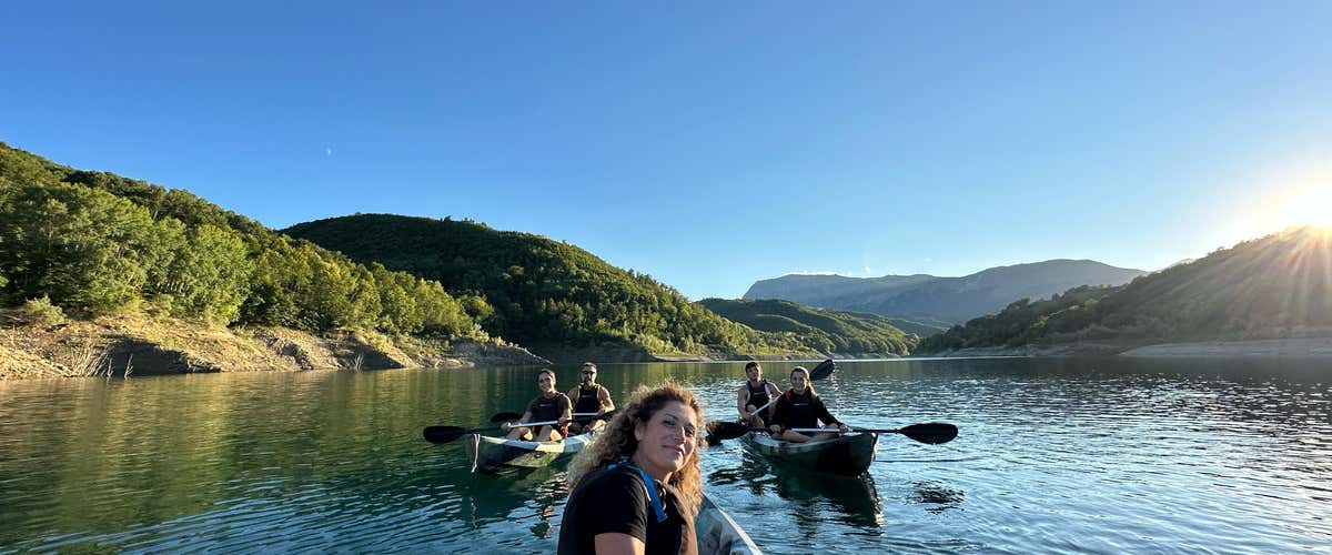 Join akayak excursion on Lake Gerosa as the sun sets behind the Sibillini Mountains. Accompanied by a guide, you will paddle across the waters of this artificial lake, surrounded by the green hills of the Marche region.