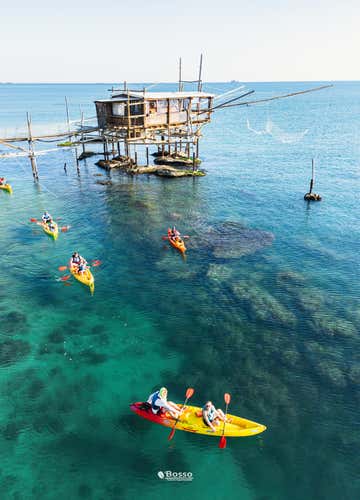 Set off on akayak excursion to discover the Costa dei Trabocchi, the characteristic stretch of Abruzzo coastline named after the ancient fishing machines on stilts.