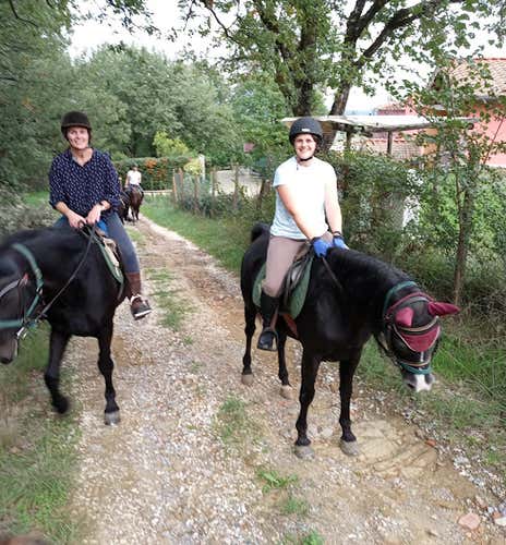 That's when we'll be ready for the horseback ride: we'll venture over the hills around the riding school and into a forest. We will overlook the valley of olive trees and spot on the horizon the characteristic crags of the Vadarno, natural compounds created by the draining of a large lake that washed the area.