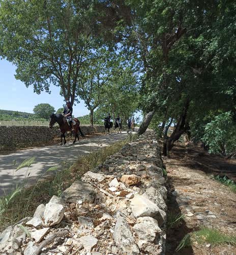 Initially, we will participate in a lesson lasting about 1 hour : we will learn the basics of how to saddle up and ride, learning the main commands. We will get to know the horses at the riding school, calm and polite animals of the Murgese breed, typical of the area.