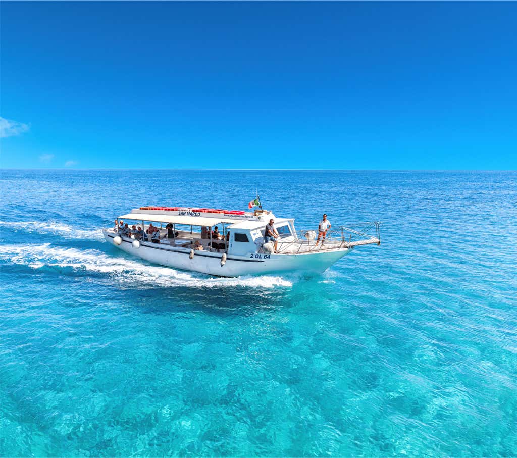 Depending on the period, different boats may be used: San Marco, Ida or Siro with a maximum capacity of 80 persons (for convenience, approximately 40-45 adult passengers can be boarded) . In high season, excursions may be made by larger motor vessels carrying up to 140 passengers (for convenience, approximately 50-55 adult passengers can be taken on board) .