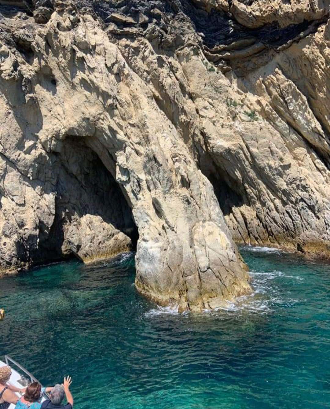 We will sail past the Grotta del Vescovo (Bishop's Cave) , the Grotta del Fico (Fig Cave ) and the Palombaia Beach until we reach Baia di Cavoli, where we will make our first 20-minute swim stop. We will then discover this inlet with its grainy sand and a sea of beautiful turquoise colours. If we are lucky, we may even come across some dolphins!