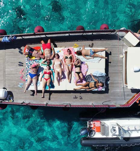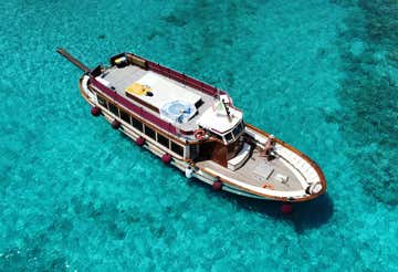 Thevintage boat on which you will sail, which adds value to the 'fairytale' scenery of the National Park. On board, you will also find a friendly and professional crew, who will accompany you on your discovery of the area. There will, of course, be no shortage of dives and swimming stops, to continue the off-board exploration.