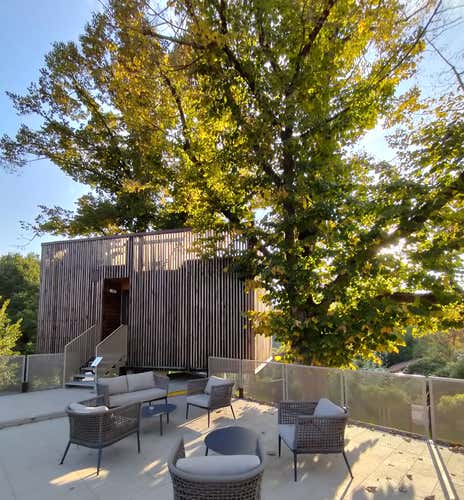 Here, a stone's throw from Lake Garda, you can experience the thrill of a night in a tree house for two. Your suite will be a true suspended nest, with a bathtub, panoramic shower and a terrace perfect for stargazing.