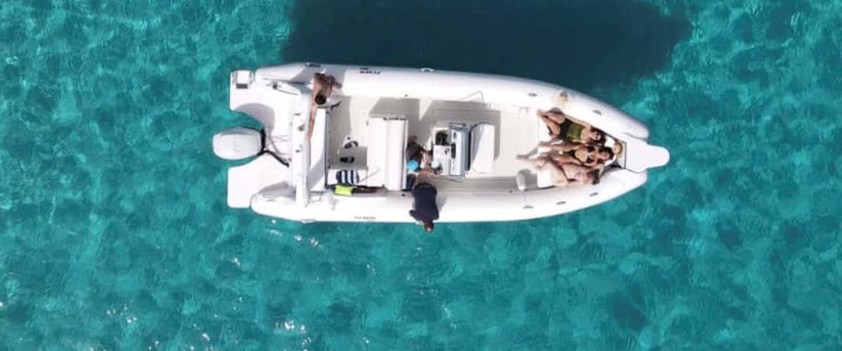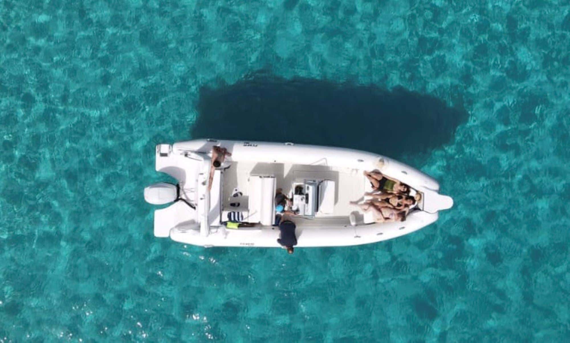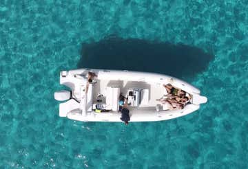 The boat used during the activity is a 7.5 m dinghy with a 250 hp engine, equipped with a removable awning, Bluetooth stereo, minibar and fresh water shower. It is necessary to remain barefoot on board.
