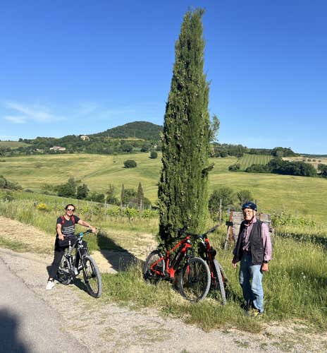 The appointment is at 9. 30 a. m. at the meeting point in Montepulciano (SI) . Waiting for you will be the organisers, who will hand you the most suitable e-bike and explain how to use it. They will also provide you with a helmet, lock, and backpack (included) and give you some advice on the route to follow, depending on your abilities.