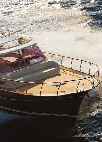 The boat used is a 12-metre long Itama motorboat with a bedroom, bathroom with shower, kitchen and living area below deck. There is a dining area with tables and seating in the stern, and a large, comfortable sofa in the bow. The speedboat is equipped with Wi-Fi and a Bluetooth stereo system.