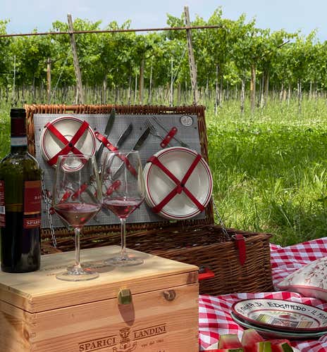 At this point, we will be able to choose a wine to put in our picnic basket from among those produced by the winery: a sparkling wine, a white wine such as Pinot Grigio, Custoza or Chardonnay , or a red between Bardolino and Cabernet. If we wish to taste theAmarone, we can do so by paying an additional fee on site.