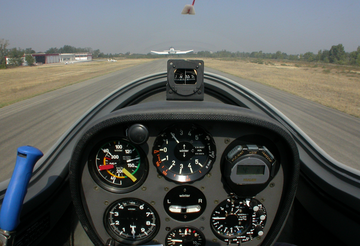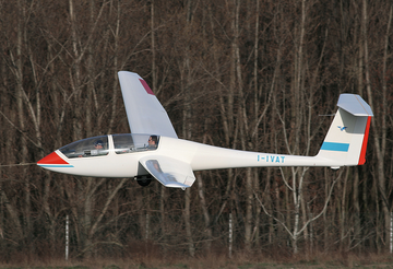 The aircraft used is a Grob G 103 Twin Astir, a two-seater medium-wing training glider. The maximum speed that can be reached is 250 km/h.
