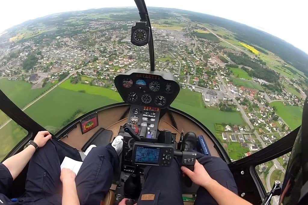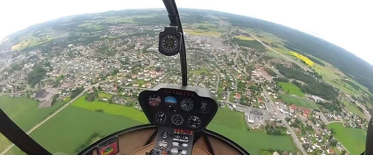 The flight takes place in aRobinson R22 helicopter with dual controls, carrying 1 pilot and 1 participant.