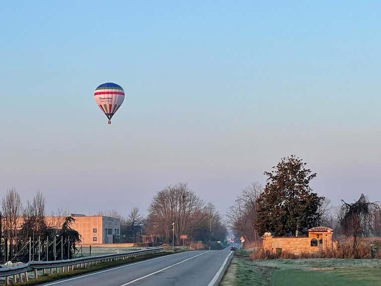 You will fly over crops in the countryside of the Po Valley and you will be able to catch a glimpse of the surroundings of Bergamo and Cremona. .. There will then be a toast on board to celebrate the start of the day.