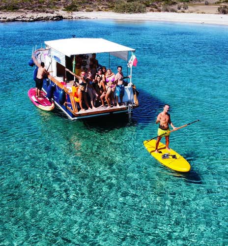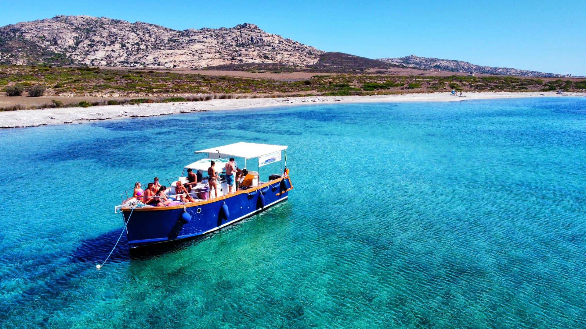 The boat intended for the tour is 10 metres long and is a modern motorboat with a wooden hull built in 2019. At the stern it is equipped with a large awning and sofas in which to sit and enjoy the excursion in comfort, while at the bow it is equipped with a sunbathing couch, a small beach for diving and a freshwater shower. The boat is completed by a galley, a cabin and a toilet. A 3-seater kayak and snorkelling masks are available on board.