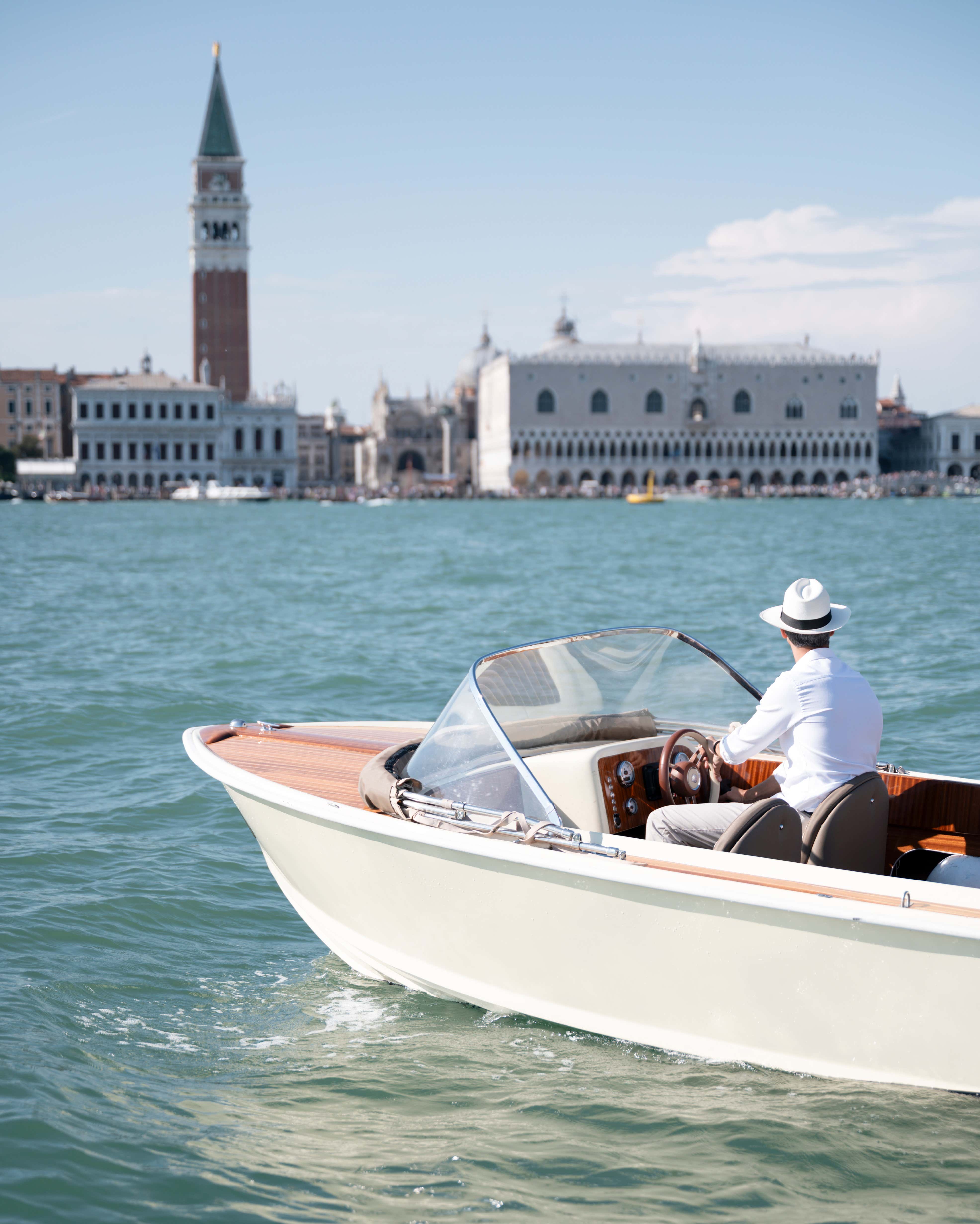 The boat used is a Tempest boat renamed 'TEPA', built at the Cantieri Nautici Solcio in 1967 and recently restored with the utmost care, from the finely polished wood to the elegant upholstery. It is a5.5-metre motor boat, equipped with a canopy, sound system, climbing ladder, icebox and life jackets.