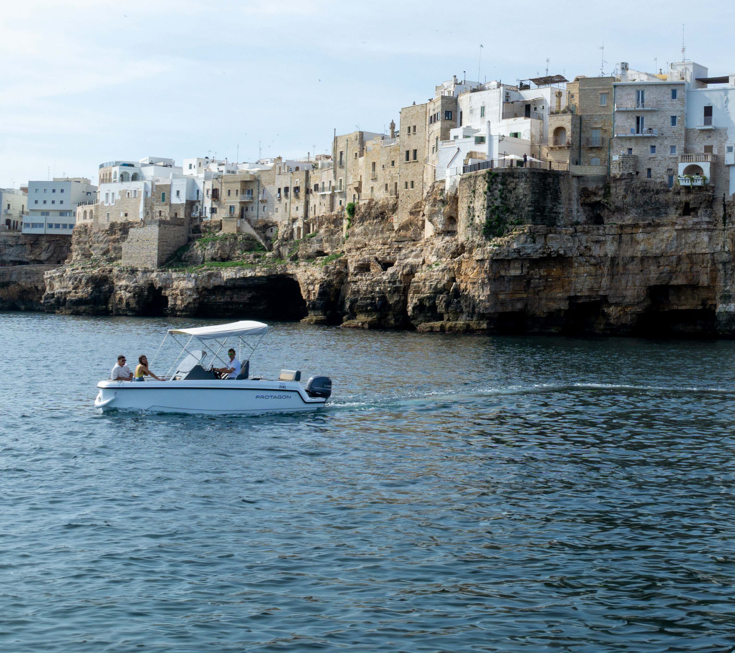 The appointment, 15 minutes before the time indicated in the booking, is in Polignano a Mare (BA) where you will be welcomed by the skipper who will be your guide during the tour.