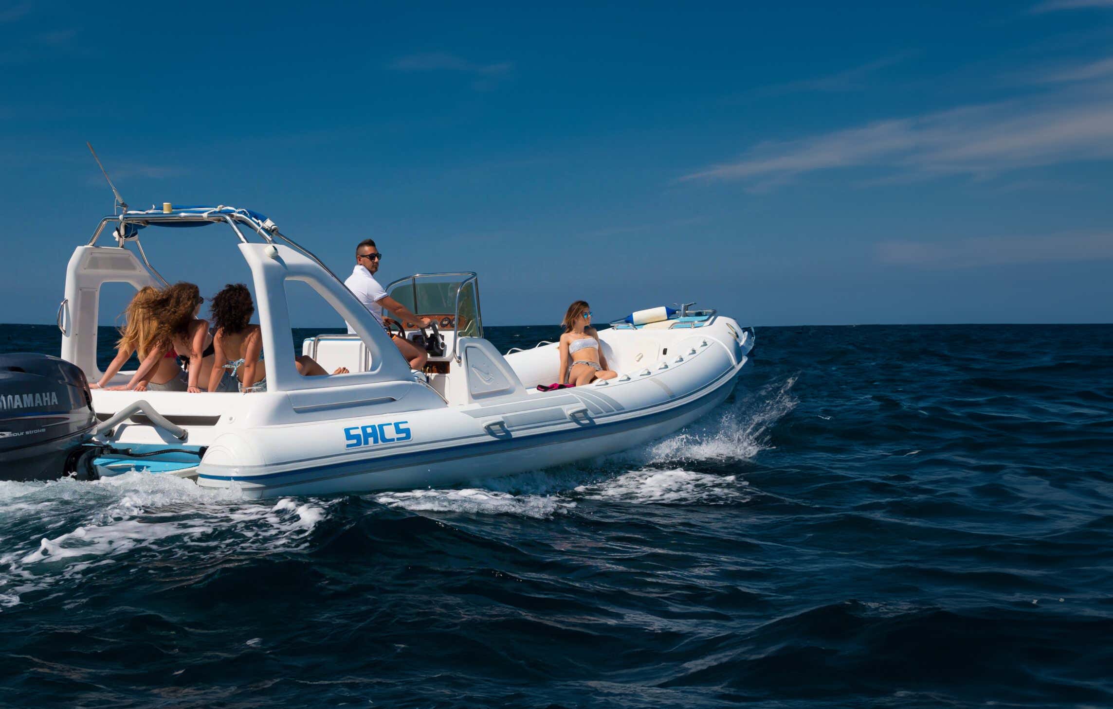 Once you've started your engines, you'll sail through the Marina di San Gregorio, stopping to look at the splendid villa, once a coastal tower that once belonged to Mussolini, and the Marina di Felloniche, whose emerald green colour is perfect for a first dive!