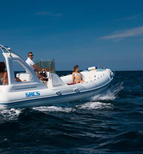 You travel on a comfortable 8.5-metre dinghy equipped with awning, freshwater shower, stereo, refrigerator, sundeck. Dogs are not allowed on board.