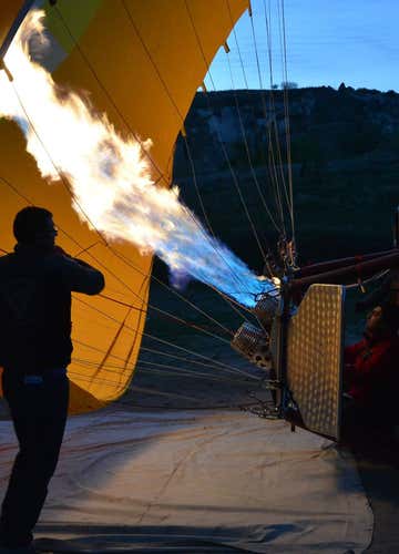 The experience begins from the very first stages of preparing the hot-air balloon. In fact, upon your arrival you will witness the ignition of the burner and the balloon inflation procedures. Then you will have a briefing on behaviour and safety rules and sit on board the basket, ready to depart.