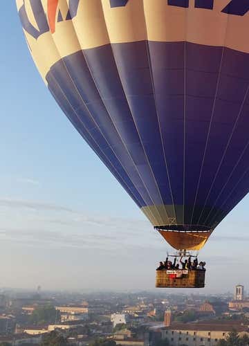 The rendezvous is 30 minutes before the selected time at the meeting point in Reggio Emilia; time and meeting point are approximate and will be confirmed to you by the pilot before the experience takes place. On your arrival you will be welcomed by the crew and you will be able to watch the preparation of the hot air balloon and the lighting of the burner, with the great blaze that allows the balloon to inflate with hot air and take off.