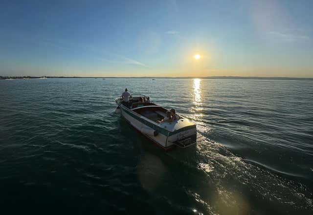 The boat used is a 7. 80-metre wooden motorboat, a historical model from a shipyard in Monte Isola, equipped with an awning, stereo and fridge.