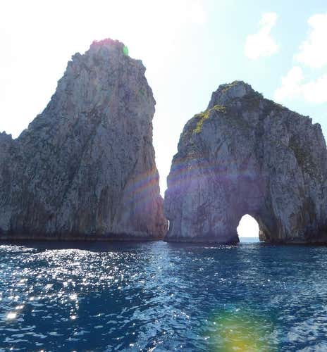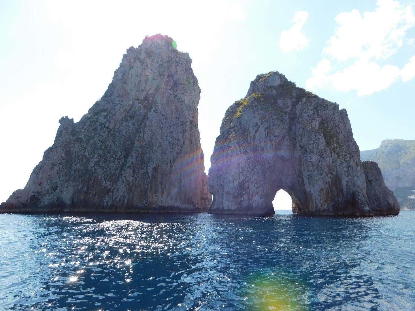 Before arriving at the port of Capri, we will have the opportunity to admire the natural arch that stands out from the coast but above all the iconic Faraglioni.