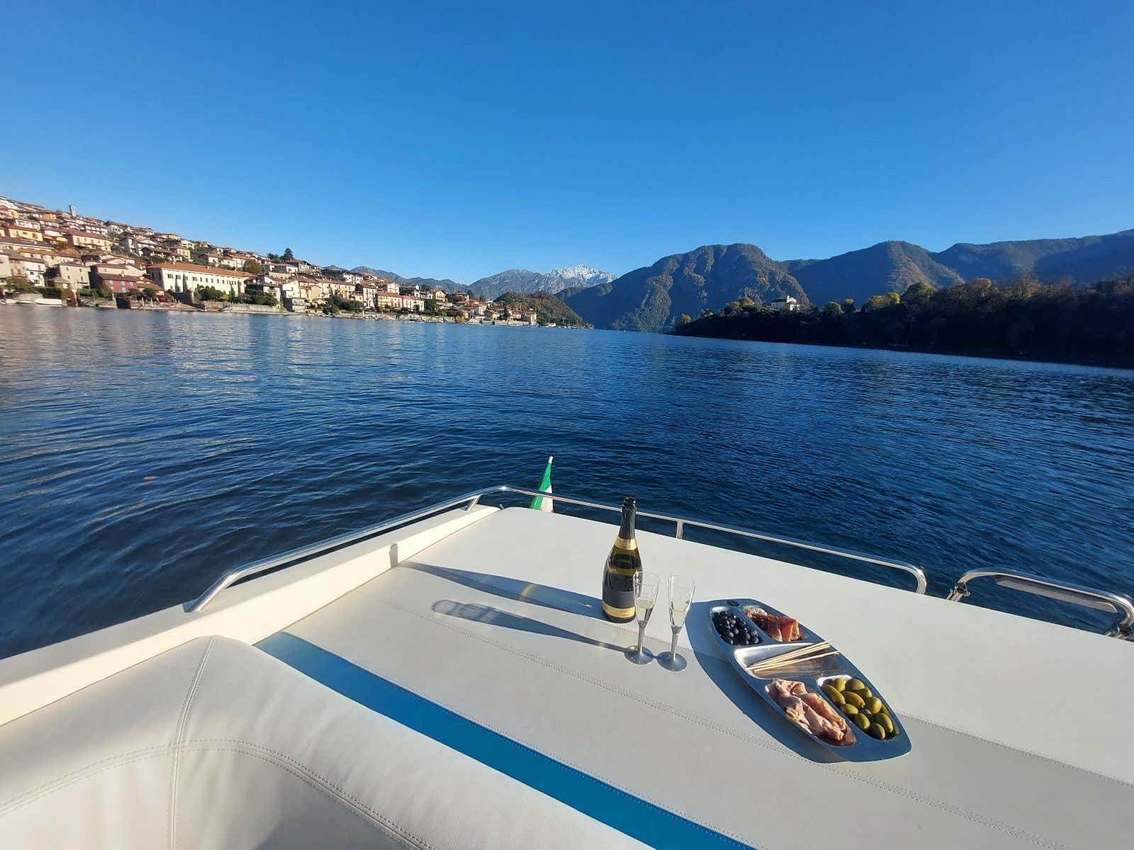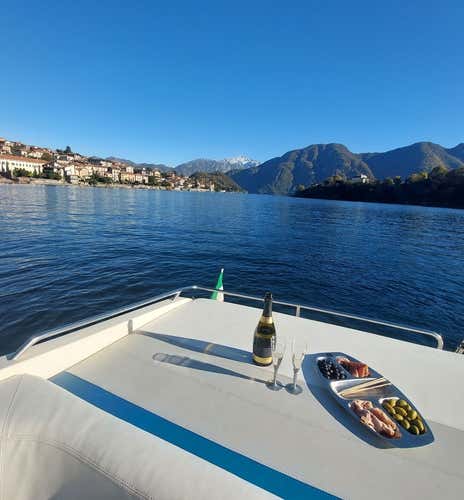 We will then head towards the opposite shore in the direction of Villa Pliniana in Torno. I will then serve you an aperitif on board with prosecco, a platter of cold meats and snacks (included).