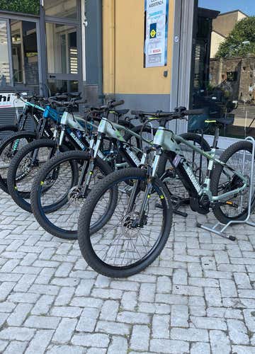 - E-bike Full: Electric bike with shock absorbers on both wheels, ideal for tackling unpaved, technical or more demanding trails with ease. This version is also equipped with a 630 Wh battery, with a range of up to 100 km.