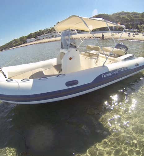 The boat is a 5. 70 mCapelli Tempest dinghy with a 40 HP engine complete with awning, freshwater shower, cushions, climbing ladder and safety equipment.