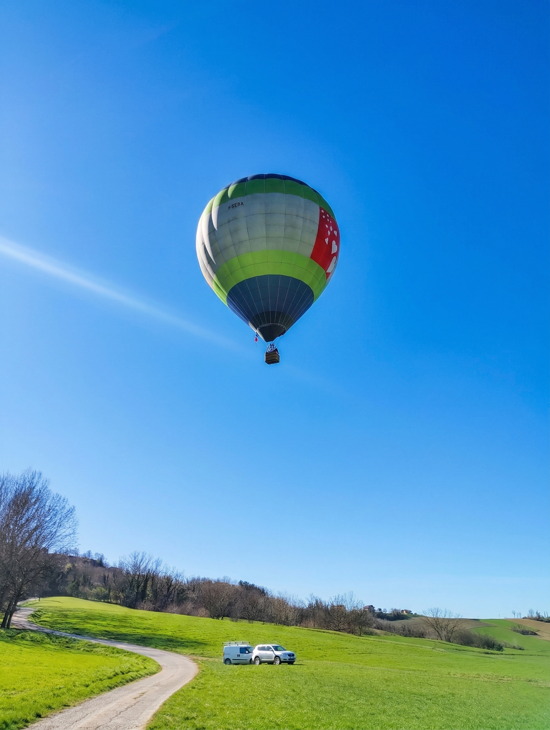 After a short briefing with the pilot, we climb aboard the wicker basket and begin to ascend. The noise of the burner, the lightness of take-off, the feeling of being off the ground: within seconds we will already be above the hills, carried gently by the wind.