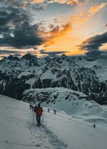 Depending on snow conditions, we will ascend either towards Monte Cavalbianco or in the direction of Monte Sillano: both options involve about 300 metres of elevation gain and an estimated length of 3 km. We will first walk through the woods, then after about half an hour we will come out onto a wide, panoramic ridge.