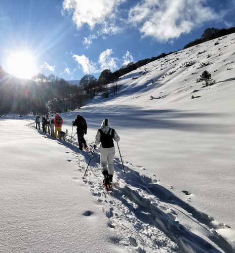 In the absence of snow, the guide will propose to participants the possibility of transforming the experience into a winter hike without snowshoes, using suitable trekking boots.