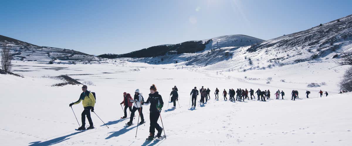 Treat yourself to a snowshoe hike in an unspoilt natural environment, dominated by the peaks of the Gran Sasso mountain range. The snowshoe hike includes a 7 km loop with no particular difficulty.