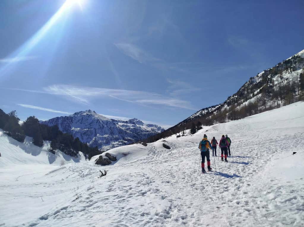 After the ritual introductions, the guide will hand us snowshoes and poles (included) , then we will participate in a briefing of about 30 minutes to learn how to move in the snow and get to know the itinerary.