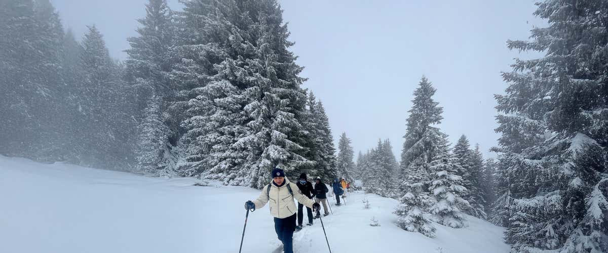 After handing over our snowshoes and poles, we will participate in an initial briefing to familiarise ourselves with the equipment and the route.