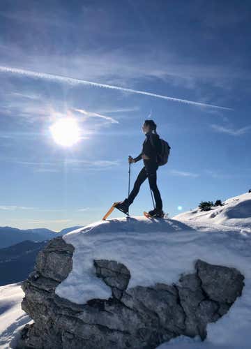 Take part in a snowshoe hike of about 4 hours on Monte Canfedin from Andalo, along a loop trail through pristine forest and away from the ski slopes. The whole time you will be accompanied by an incredible view of the snow-capped Brenta Dolomites. .. plus an Alpine Guide, of course!