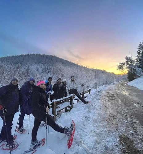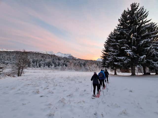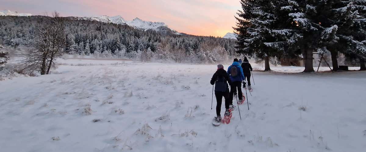 Before setting off, we will attend an initial briefing: the guide will present the route, give safety instructions and hand us our snowshoes.