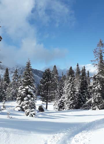 The meeting point is 30 minutes before the selected time at Passo Valles, near San Martino di Castrozza (TN). Here we will meet our hiking guide and receive snowshoes and poles (included) for the hike.
