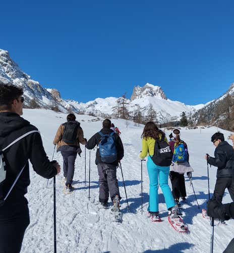 After the customary introductions, the guide will hand us snowshoes and poles (included) , then we will take part in a briefing of about 30 minutes to learn how to move through the snow and get to know the itinerary.