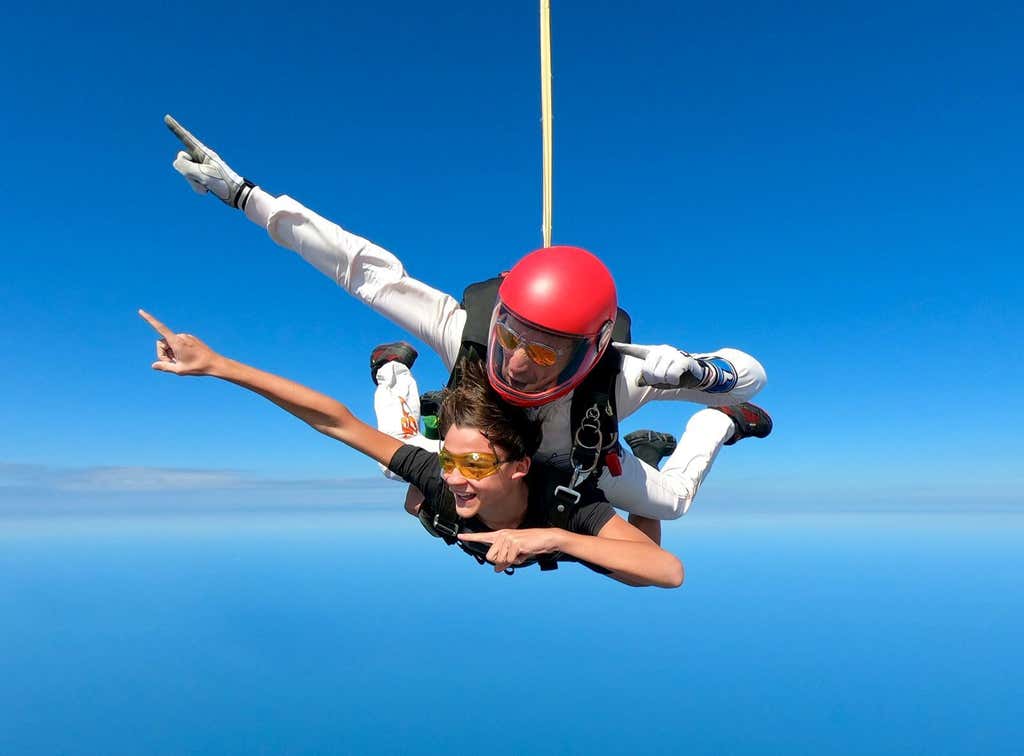 - Tandem parachute jump from 4,000 metres and feel the adrenaline!