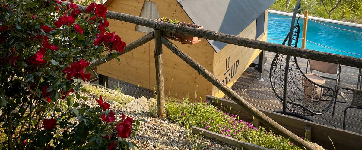 The StarsBox is located opposite the outdoor swimming pool, with a large wooden patio and a magnificent view of the vineyards of Monforte d'Alba. During your stay, you can relax with a dip in the swimming pool (open from June to September) or soak in the outdoor Jacuzzi for a moment of pure well-being. Sun loungers are also at your disposal, perfect for admiring the view and letting yourself be enveloped in peace and quiet.