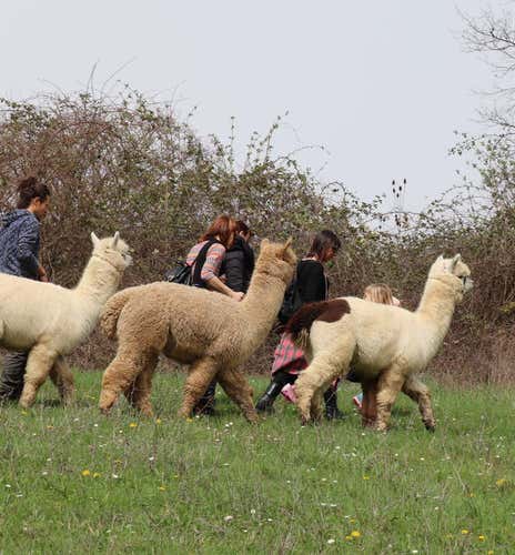 The alpaca walk may be shared with other participants. Hiking shoes must be worn in order to participate: the walk takes place in the hills and there are gentle ups and downs along the way) .