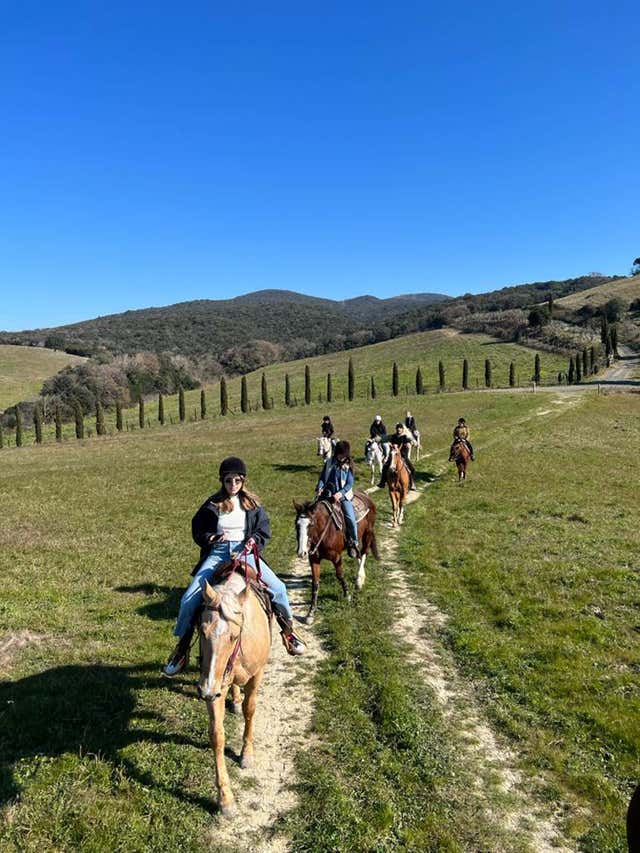 Two things can make anyone happy: the smell of Tuscany and a horse taking you through hills and vineyards.