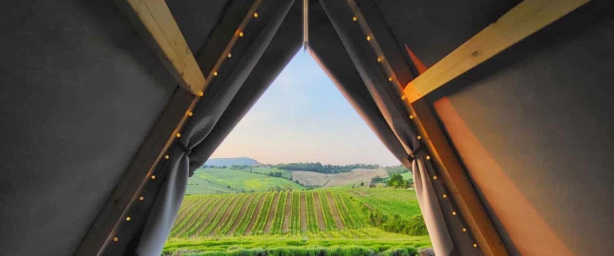 You will then be taken to your Tipì, a structure that combines the charm of a tent with the solidity of a raised wooden base. Inside you will find a double bed with sheets and towels included, while the private bathroom and sun shower will be located outside, a few steps away.