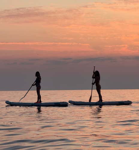 We will begin with a briefing on land lasting about 30 minutes, during which we will learn about the equipment, paddling technique and how to move around safely on the SUP. Then we'll enter the water and do some mobility exercises, which will help us loosen up and get familiar with the board so we can try to stand up.