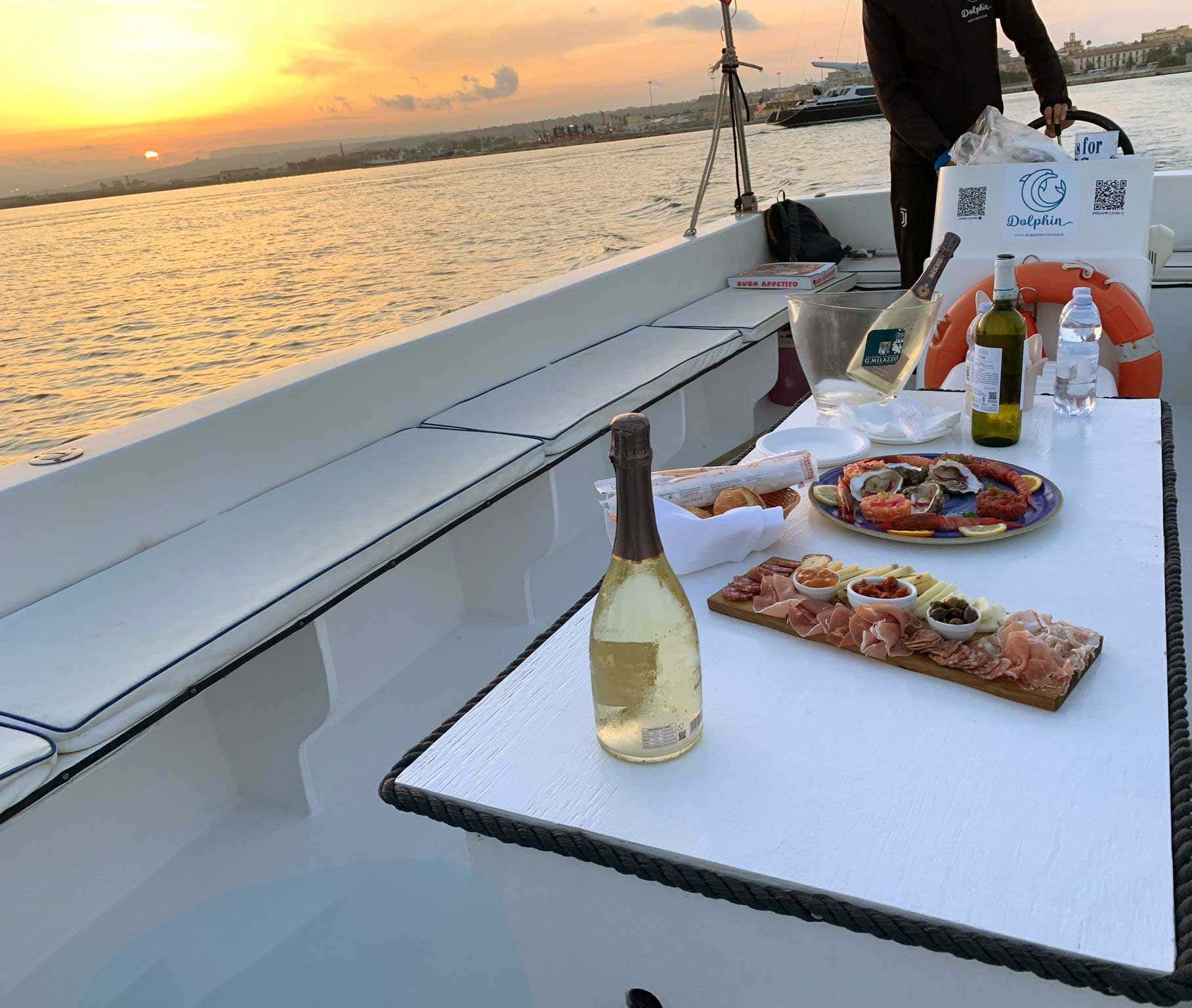 Sail along the Syracuse coastline to discover its beauty, made even more unforgettable by the colours of the sunset.