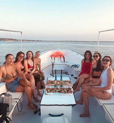 The tour includes a 30-minute swimming stop and a delicious aperitif with a cheese and salami platter, caponata and olives, all accompanied by prosecco (or water). We will enjoy these delicacies right in front of the landscape of the Arethusa Spring, one of Syracuse's most suggestive views.