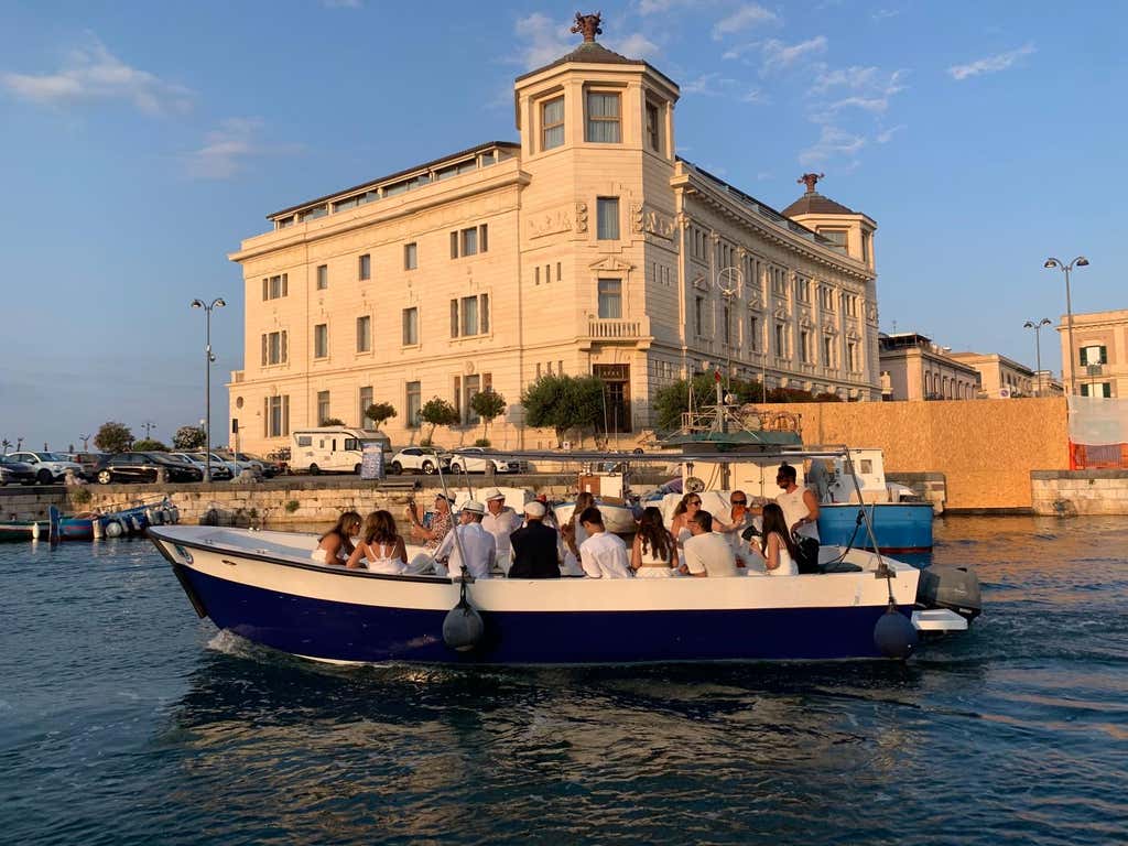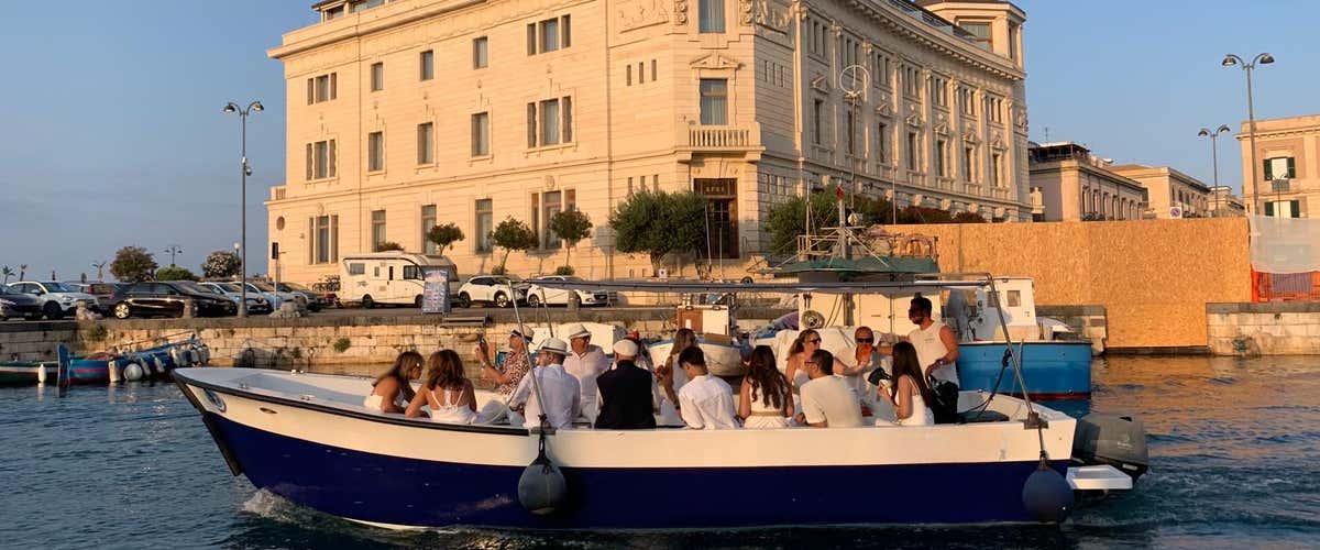 The tour includes a 30-minute stop for swimming and an aperitif based on typical local products, right in front of the Arethusa Spring, the freshwater spring that laps the sea at Syracuse.